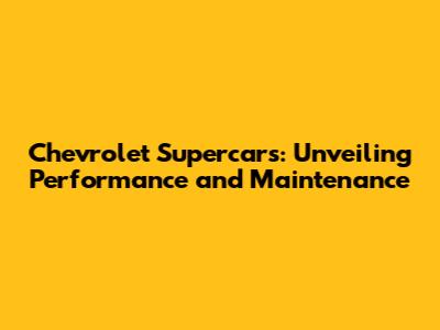 Chevrolet Supercars: Unveiling Performance And Maintenance