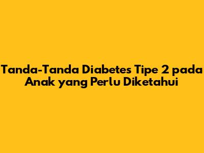 Tanda-Tanda Diabetes Tipe 2 Pada Anak Yang Perlu Diketahui